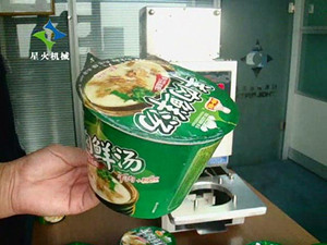 方便面半自動封杯機主要針對各種碗裝方便面、桶裝方便面、米線,粉絲等快餐食品的灌裝封口,操作方便,全不銹鋼設計,清潔衛生,符合國家QS認證,數字化plc屏顯,自動光眼跟蹤技術,人工放盒,自動封口、封切,性能穩定、可靠是理想的方便面生產包裝線的封口設備。